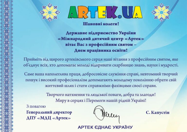 ДокладнішеВітання від ДПУ МДЦ “Артек”