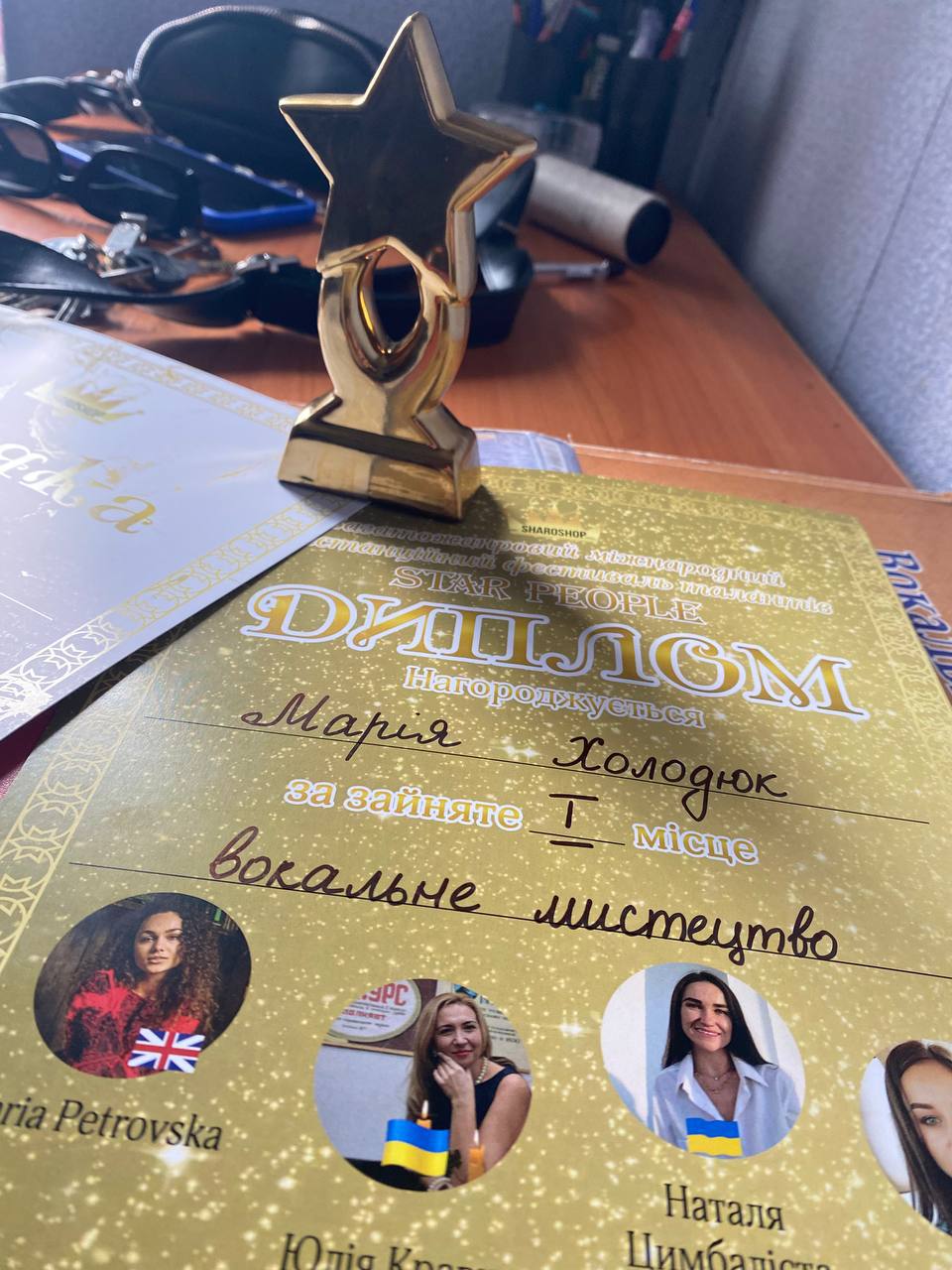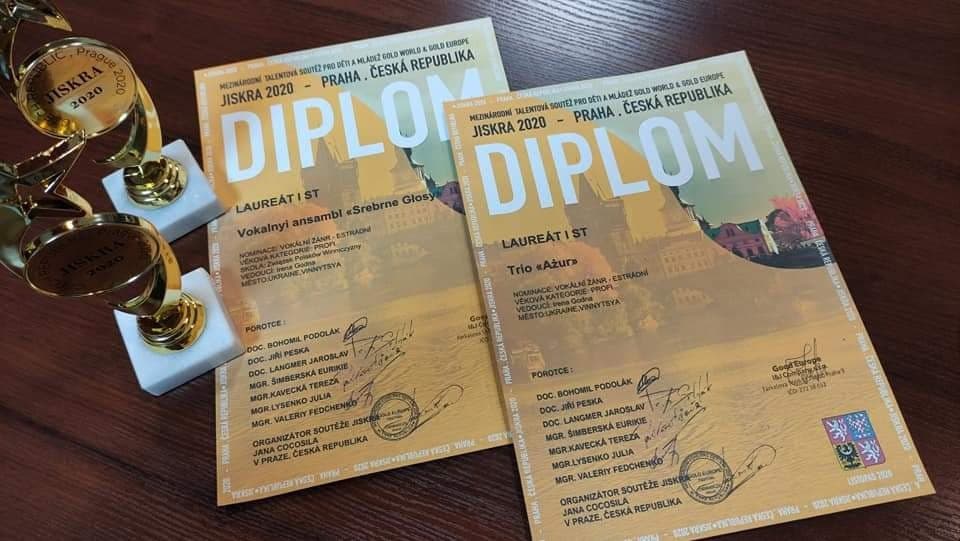 - Диплом учасника III Міжнародного конкурсу вокалістів «Пам’яті Мусліма Магомаєва» 2020 рік.