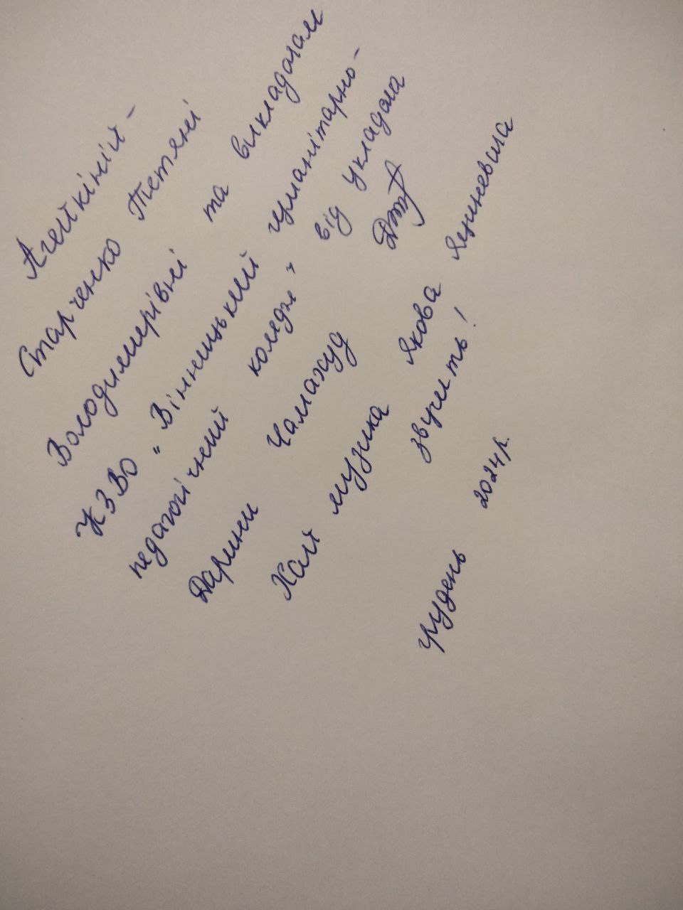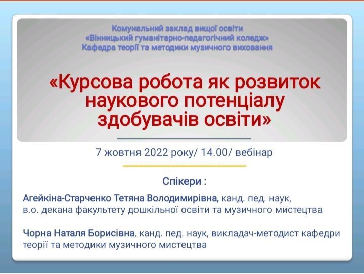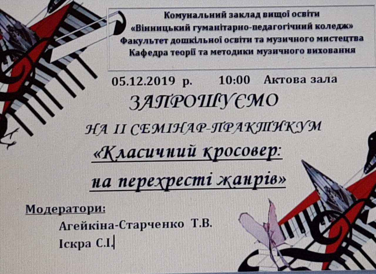 З 2018 року започатковано проведення семінару-практикуму «У колі канонів» з хорового мистецтва для вчителів музичного мистецтва Вінницької області.