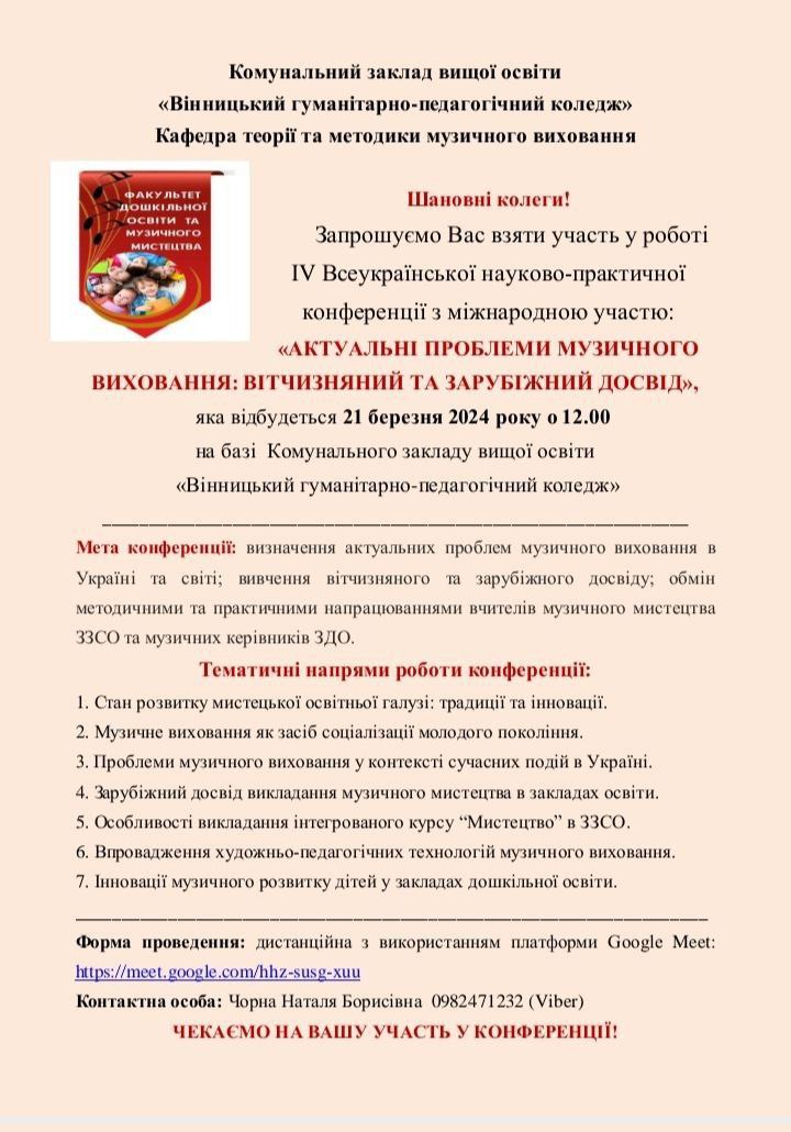 КАФЕДРА ТЕОРІЇ ТА МЕТОДИКИ МУЗИЧНОГО ВИХОВАННЯ