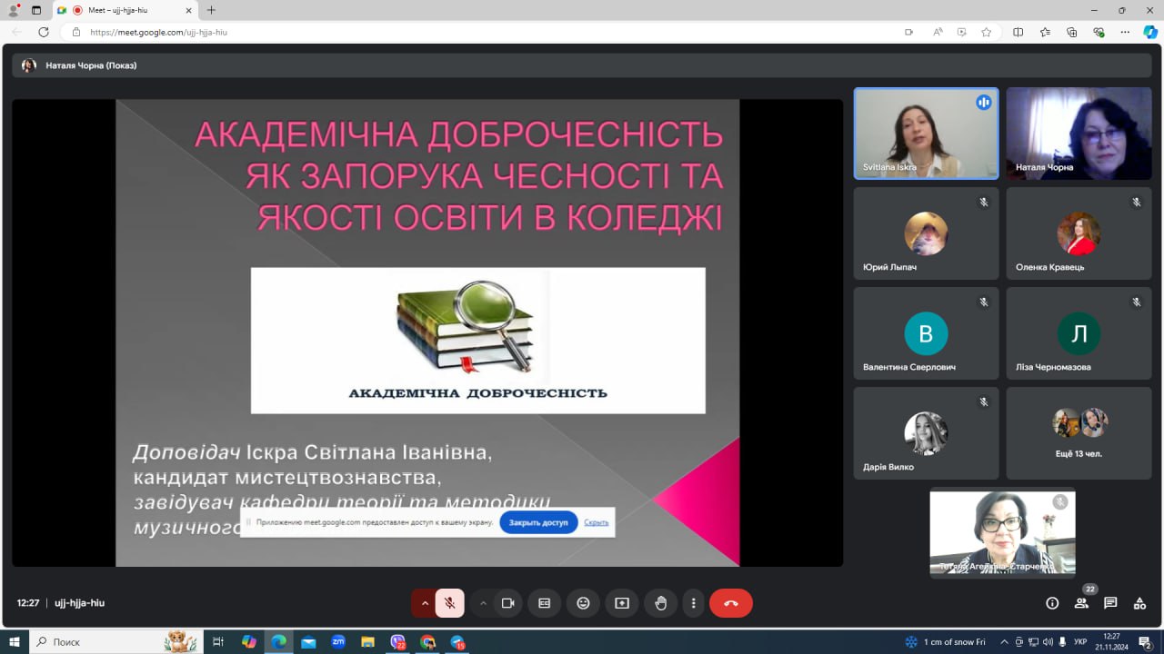 Х Міжнародна програма підвищення кваліфікації керівників закладів освіти і науки, педагогічних і науково-педагогічних працівників «Разом із Нобелівськими лауреатами: Цінності, Досвід, Знання, Компетентності і Технології для формування успішної особистості та трансформації оточуючого світу» 13 січня – 11 березня 2023 р., 180 год., 6 кредитів EKTS. Міжнародний сертифікат №10 387 від 11.03.2023 р.