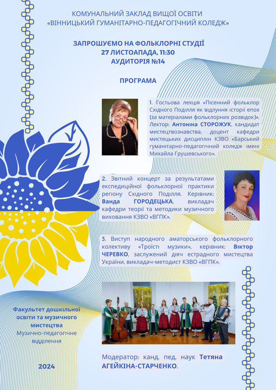 Мистецтвознавство, розвиток вокальних здібностей майбутнього вчителя музичного мистецтва, фольклорна спадщина Поділля.