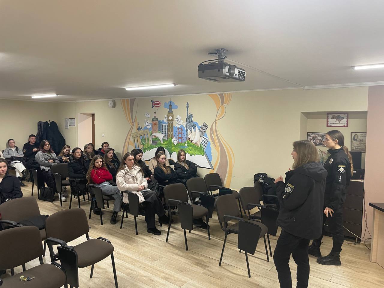 Бесіду з молоддю вели інспектори з ювенальної привенції відділу поліції №1 Вінницького РУП ГУНП у Вінницькій області, старший лейтенант поліції Катерина Бзова й лейтенант поліції Тетяна Форманюк.