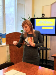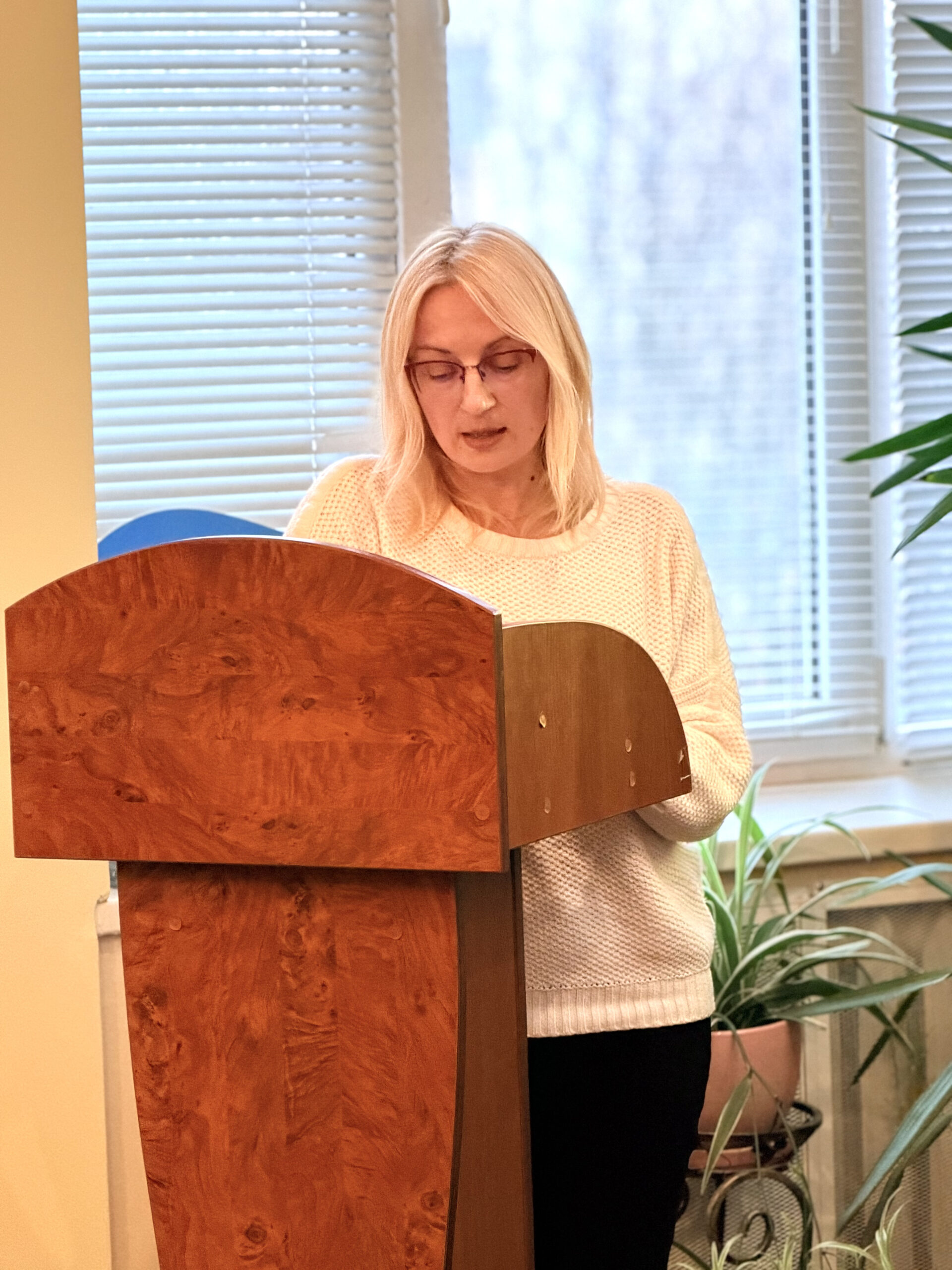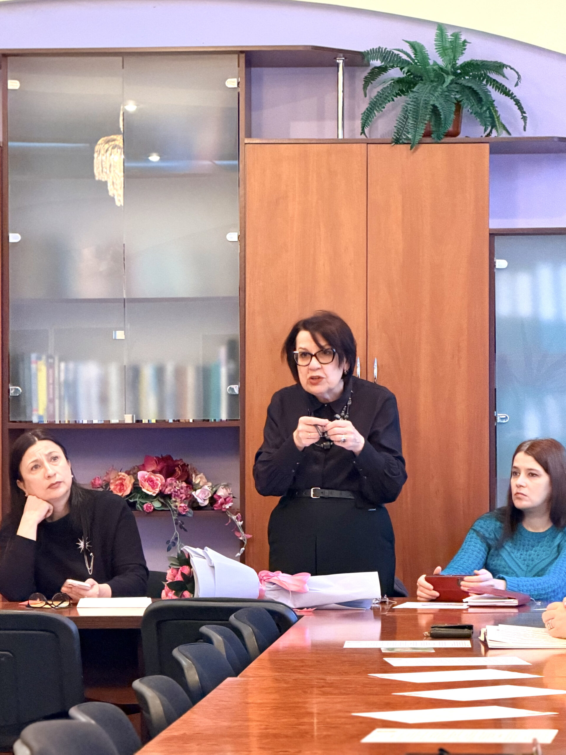Керівник науково-аналітичного відділу закладу, кандидат педагогічних наук, доцент Неліна Хамська запропонувала до затвердження Положення про студентські наукові гуртки і отримала схвальні відгуки щодо основних статей документу.