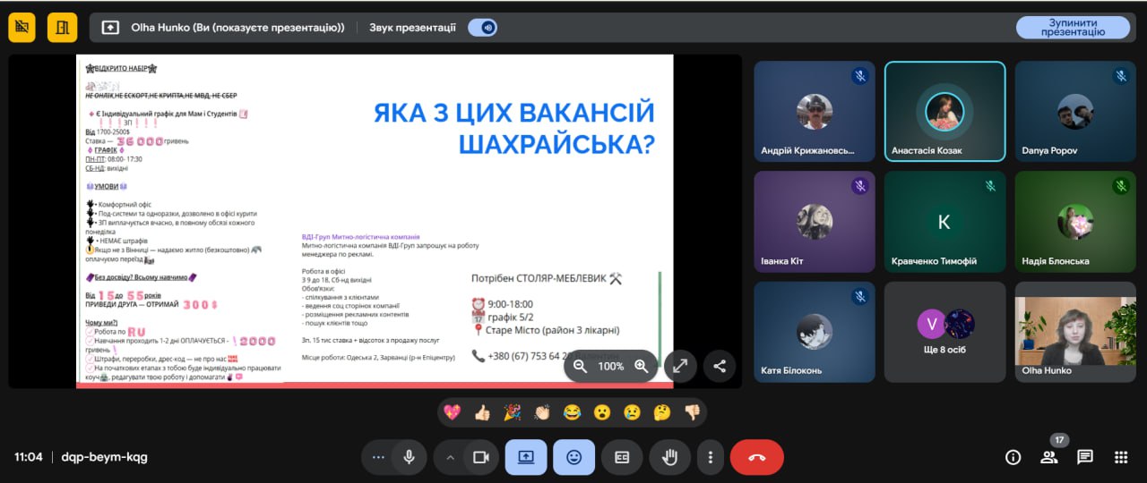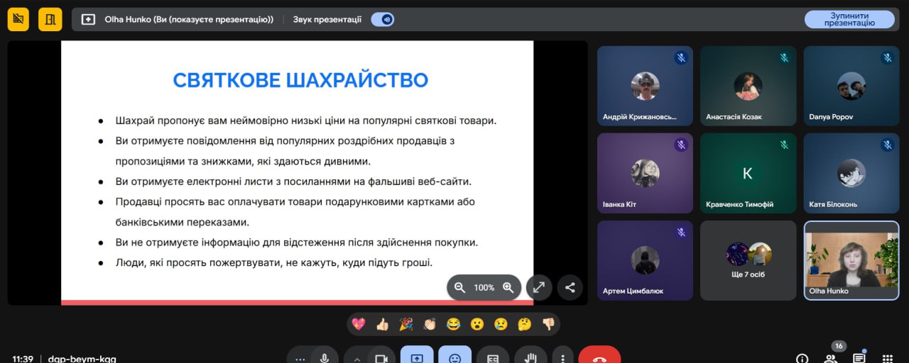У рамках вивчення освітнього компонента «Інформаційні системи і мережі» здобувачі фахової передвищої освіти спеціальності 015.39 «Професійна освіта (Цифрові технології)» прослухали гостьову лекцію на тему “ONLINE SCAMMING”.
