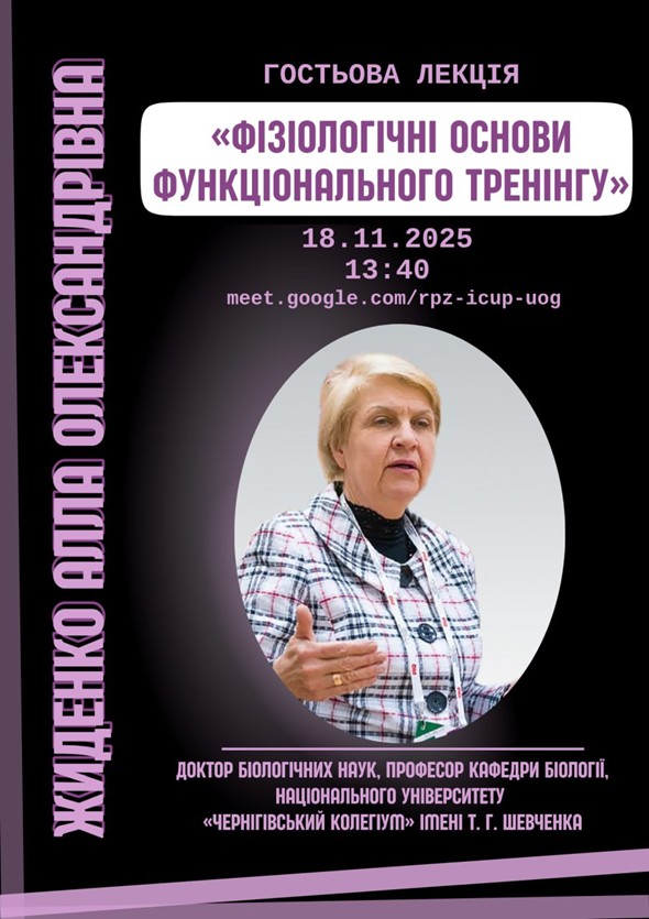 Лекцію провела Алла Олександрівна Жиденко, доктор біологічних наук, професор кафедри біології Національного університету «Чернігівський колегіум» імені Т. Г. Шевченка (м. Чернігів, Україна). Її багаторічний науковий досвід та ґрунтовні дослідження у сфері фізіології забезпечили високий рівень подання матеріалу.