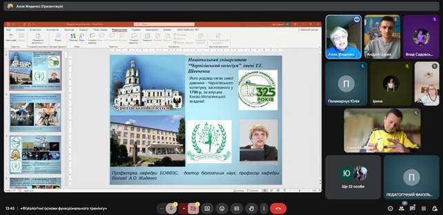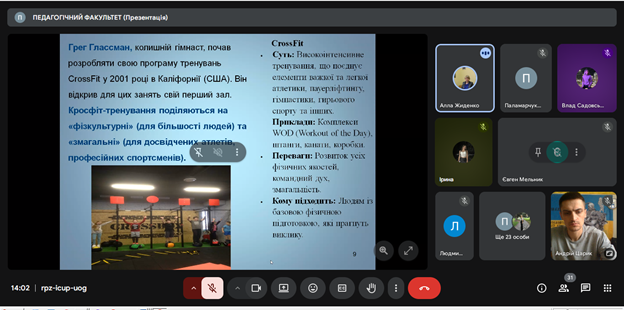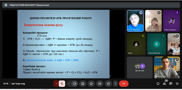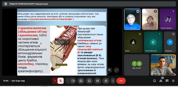 У ході виступу лекторка детально розкрила ключові фізіологічні механізми, що лежать в основі функціонального тренінгу, зосередивши увагу на принципах формування тренувального навантаження, адаптаційних реакціях організму та особливостях розвитку рухових якостей. Значна увага була приділена практичним аспектам застосування функціонального тренінгу у роботі майбутніх учителів фізичної культури та фахівців спортивної галузі.