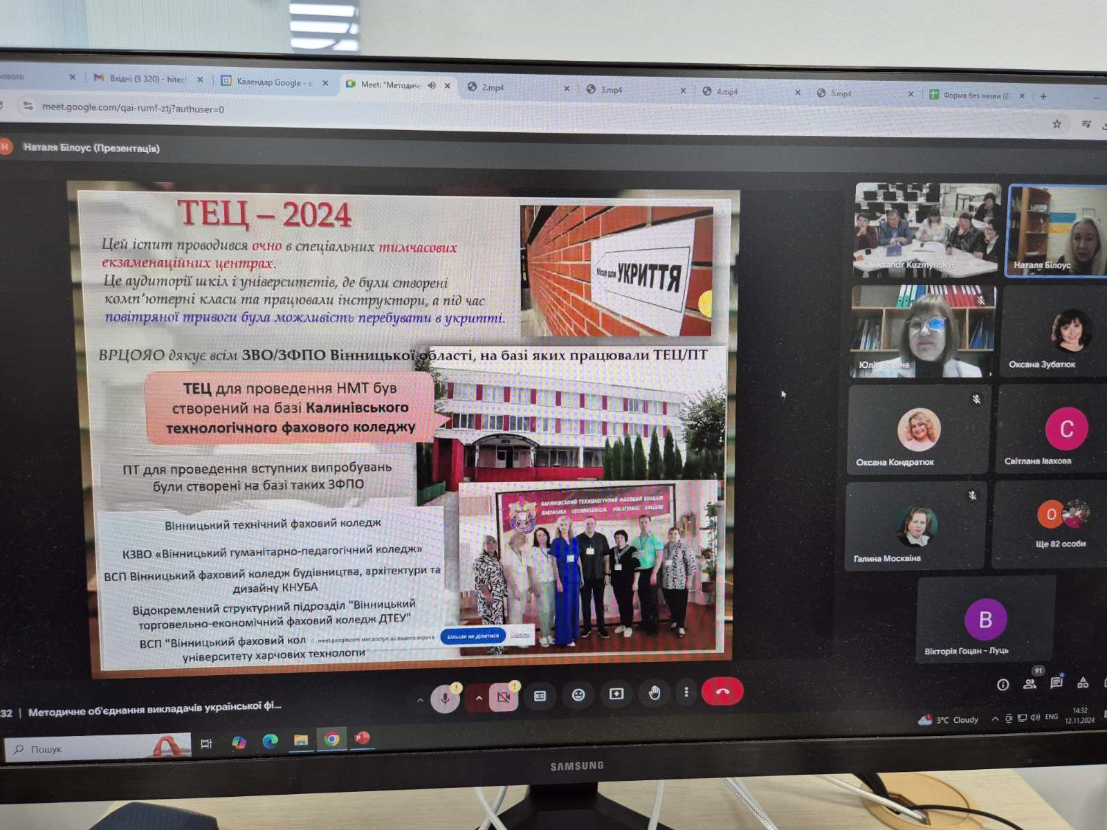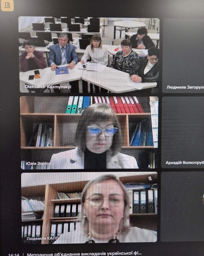 12 листопада 2024 року на базі Комунального закладу вищої освіти «Вінницький гуманітарно-педагогічний коледж» відбулось онлайн-засідання обласного методичного об’єднання викладачів української філології. До участі у засіданні долучилося 100 слухачів з 23 коледжів області та міста. Зустріч розпочалася з вітальних слів директора КЗВО «Вінницький гуманітарно-педагогічний коледж» Войцехівського Костянтина Францовича, директора базового закладу фахової передвищої освіти Вінницького технічного фахового коледжу Василюк Світлани Михайлівни, голови обласного методичного об’єднання викладачів української філології, методиста Вінницького технічного фахового коледжу, кандидата філологічних наук Зоріної Юлії Валеріївни, методиста Ради директорів закладів фахової передвищої освіти Вінницької області, кандидата педагогічних наук Моторної Лесі Володимирівни.