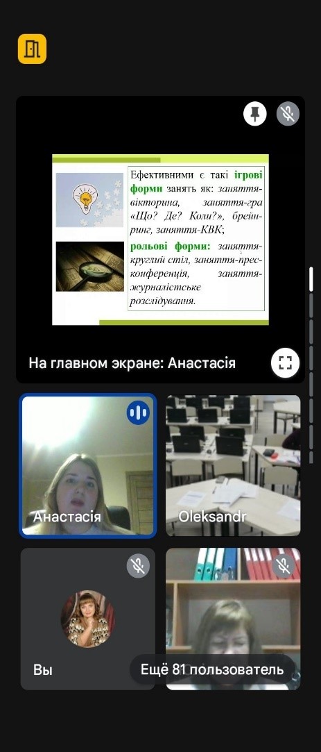 Викладач-методист КЗВО «Вінницький гуманітарно-педагогічний коледж» Турлюк Світлана Вікторівна поділилась своїм досвідом: «Організація самостійної роботи здобувачів освіти Комунального закладу вищої освіти «Вінницький гуманітарно-педагогічний коледж з рідної мови».