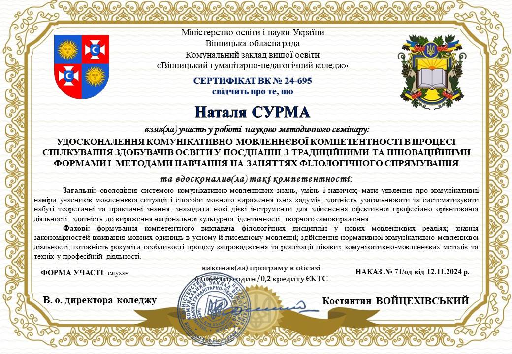 За результатом науково-методичного семінару учасники отримали сертифікати про підвищення кваліфікації. Колеги обмінялись враженнями від співпраці.