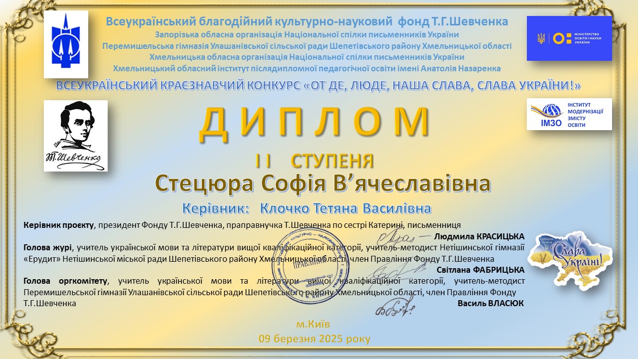 СТЕЦЮРА СОФІЯ – ДИПЛОМ ІІ СТУПЕНЯ 👩🎓