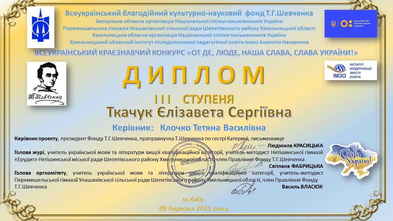 ТКАЧУК ЄЛІЗАВЕТА – ДИПЛОМ ІІІ СТУПЕНЯ👩🎓