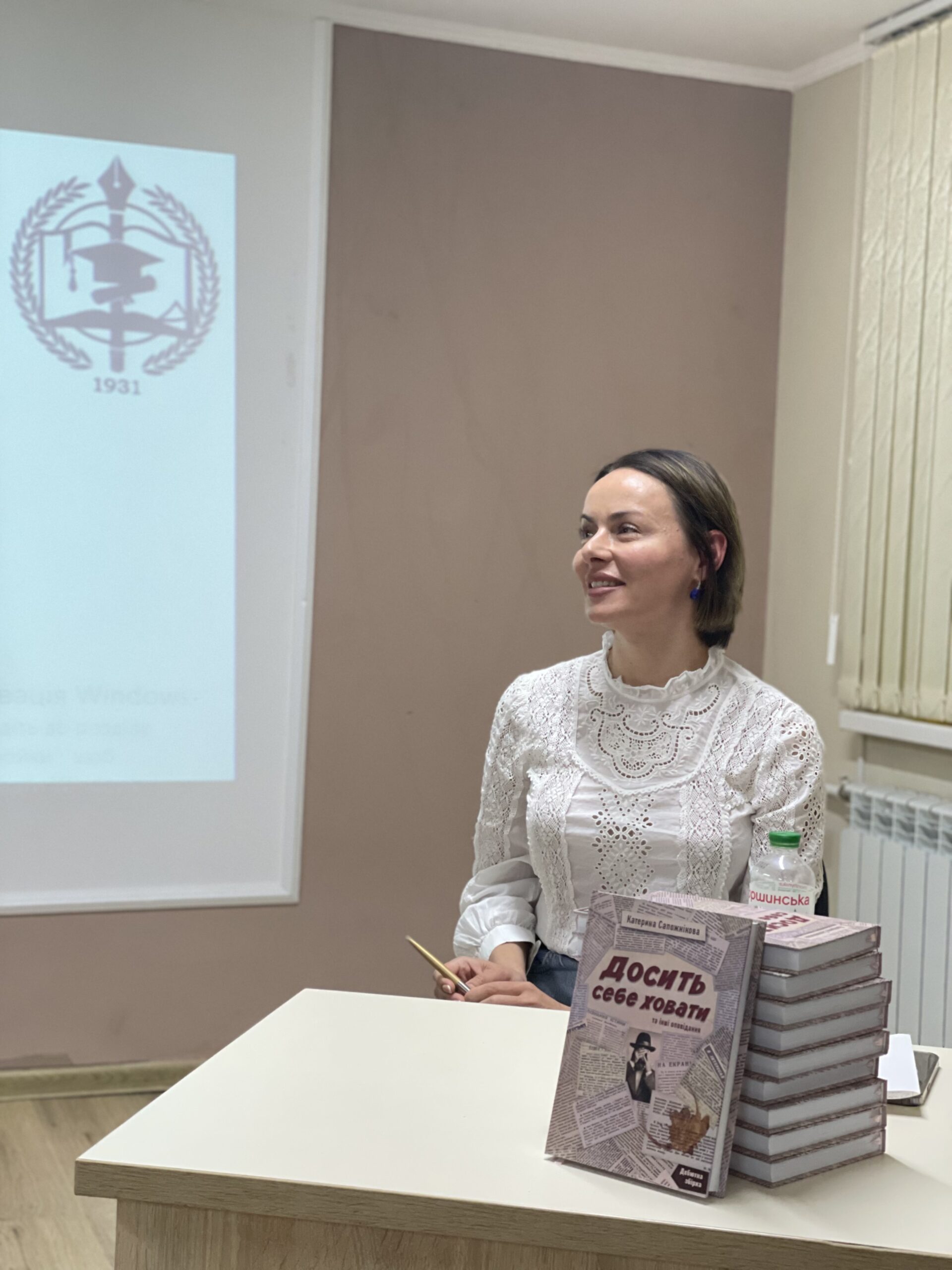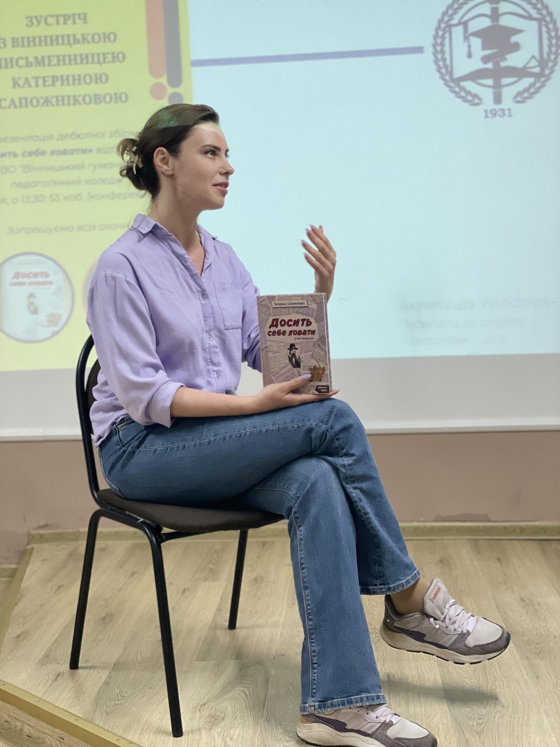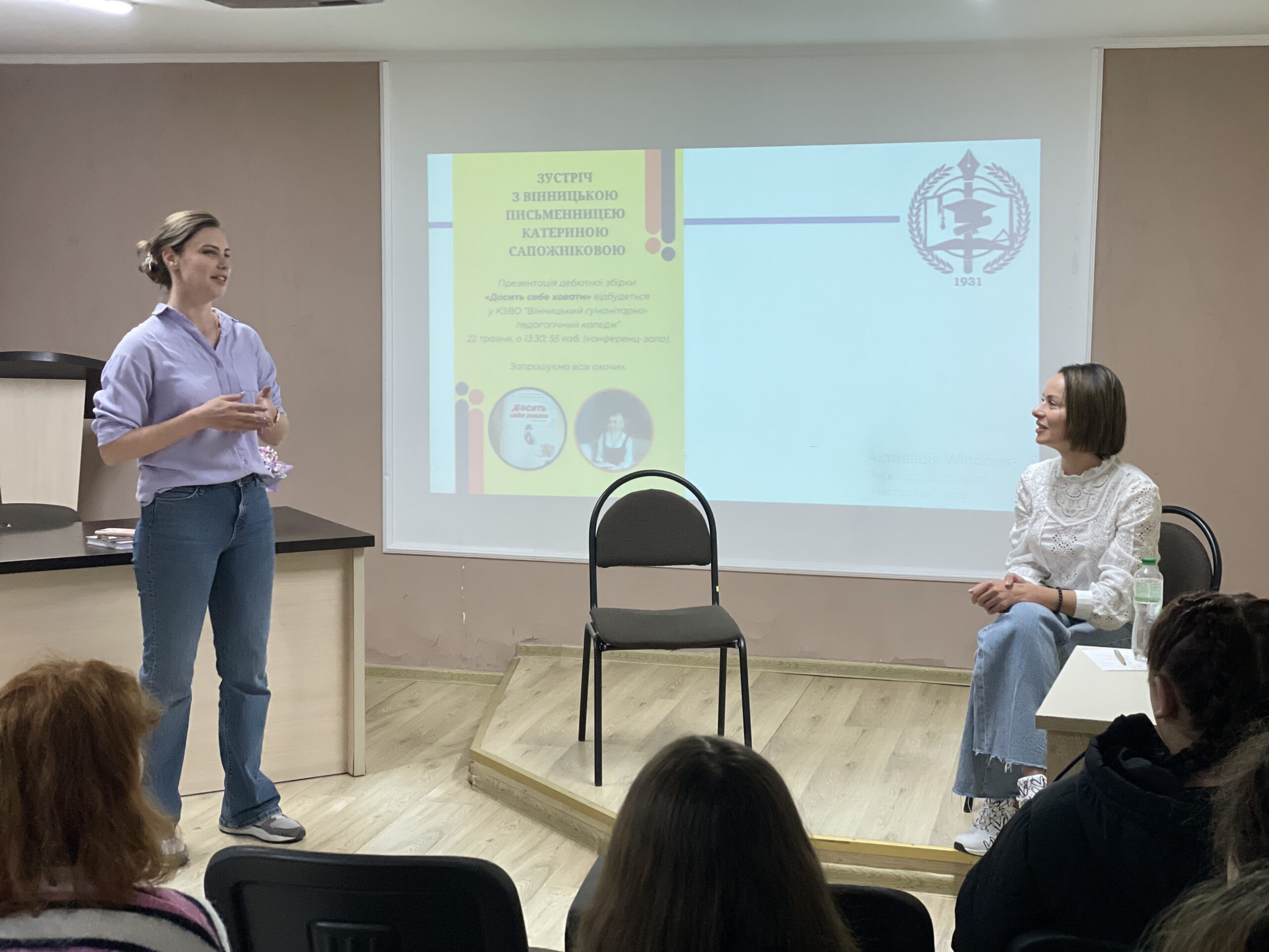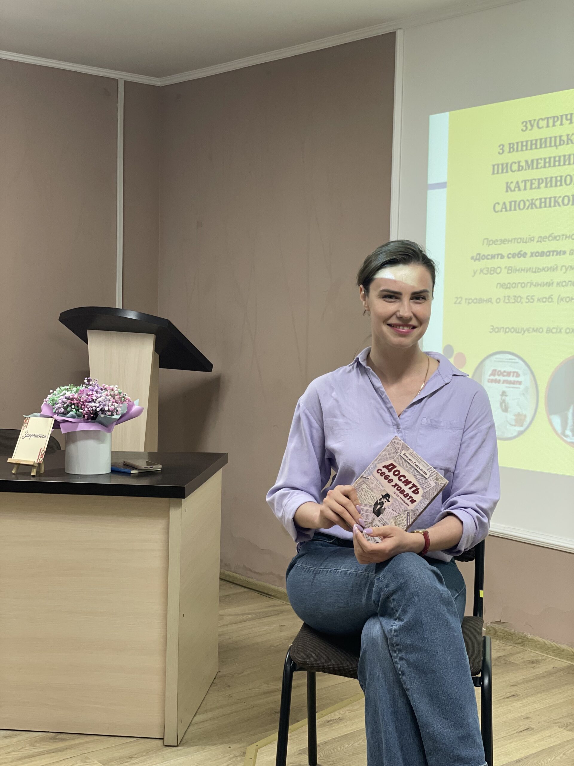 22 травня у КЗВО «Вінницький гуманітарно-педагогічний коледж» відбулася зустріч із вінницькою письменницею Катериною САПОЖНІКОВОЮ, під час якої було презентовано її дебютну збірку «Досить себе ховати».