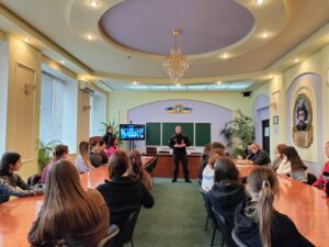12 листопада 2025 року у стінах Комунального закладу вищої освіти «Вінницький гуманітарно-педагогічний коледж» відбулася зустріч з представником Кіберполіції, старшим лейтенантом СТОРОЖУКОМ В.В. , який провів лекцію здобувачам освіти 31-Е, 31-Д, 41-Ш груп на тему: «Шахрайство в інтернет- просторі».