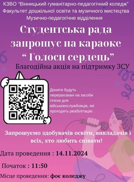 Органи студентського самоврядування сприяють організації навчальної, наукової, культурно-просвітницької, спортивно-масової та іншої діяльності за участю здобувачів освіти Комунального закладу вищої освіти «Вінницький гуманітарно-педагогічний коледж».